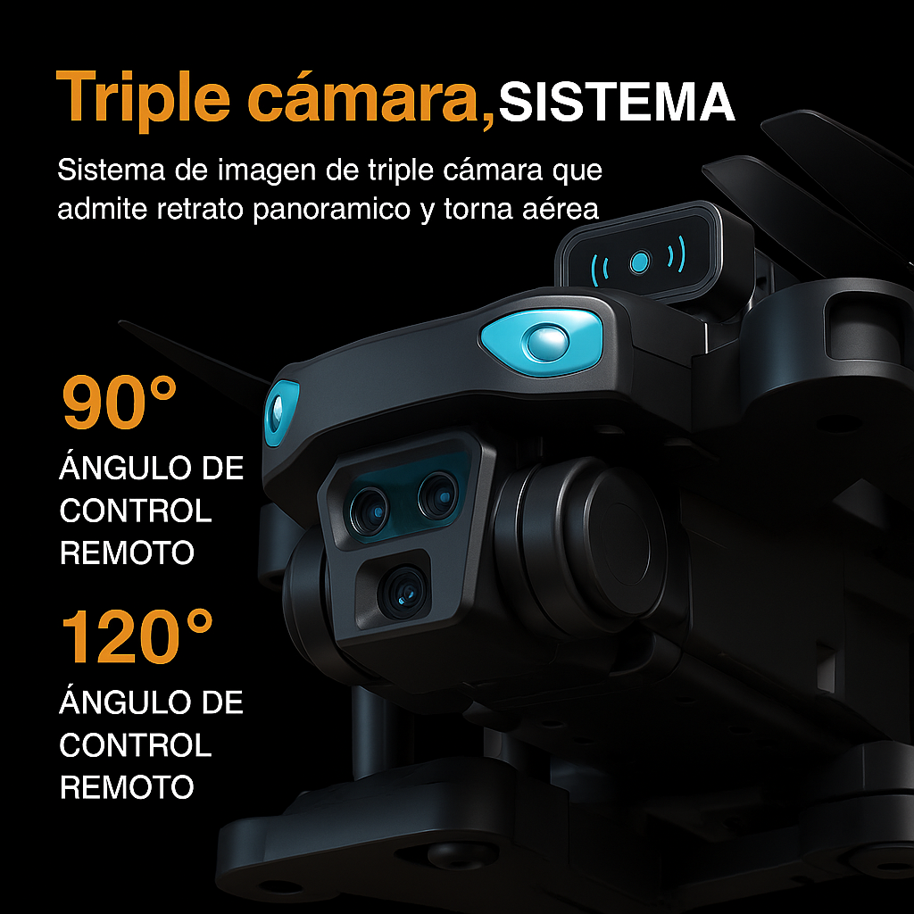 - Cámaras: Doble cámara HD/4K, ajustable 90° (transmisión WiFi en tiempo real).